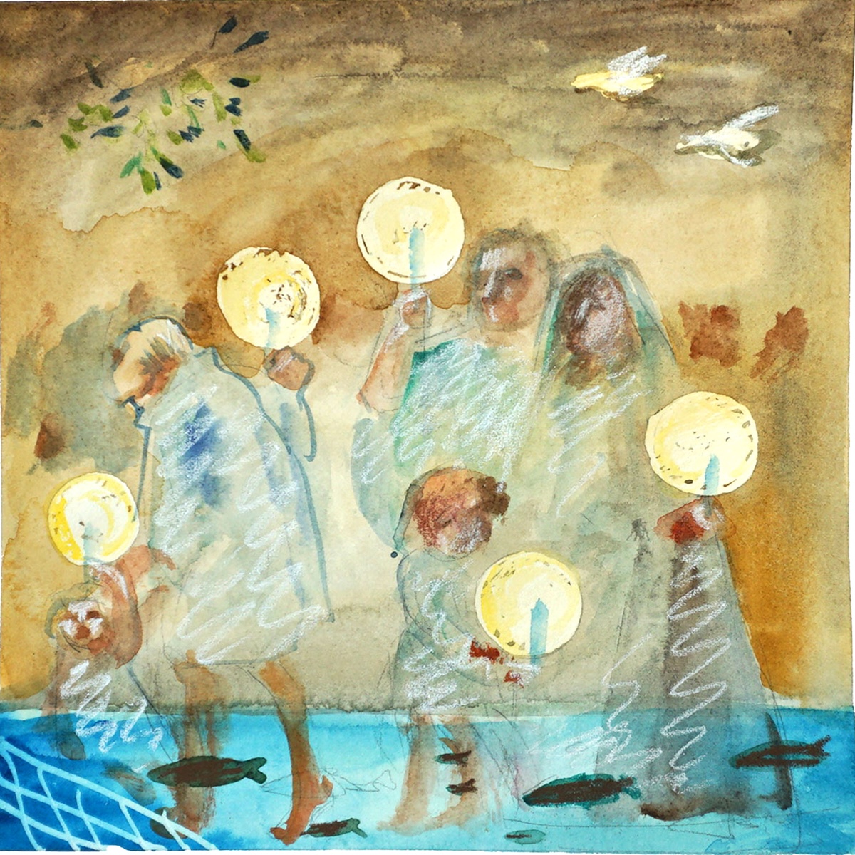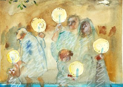 watercolor on paper, 8 x 8 in, from the Proposal for the Baptistry Murals for St. Joseph Cathedral, Jefferson City, Missouri, 2021